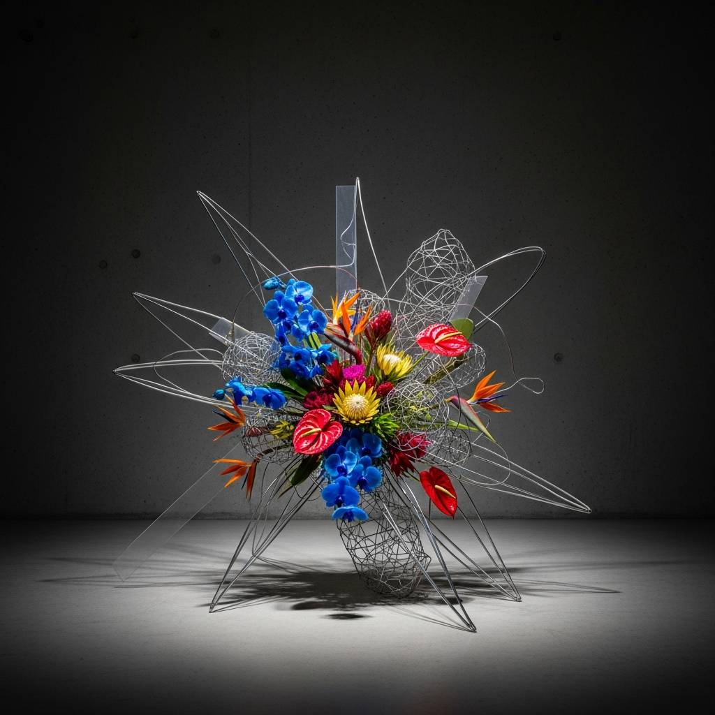 いけばなと聞いて、多くの人が思い浮かべるのは、静寂に包まれた和室や床の間に飾られた慎ましやかな草花の姿ではないでしょうか。しかし、現代の華道展やインスタレーションの現場に足を運ぶと、そんな既存のイメージは心地よい衝撃とともに打ち砕かれます。今、世界のアートシーンからも熱い視線を浴びているのが、金属やプラスチック、ガラスといった「異素材」を大胆に組み合わせた革新的な作品群です。