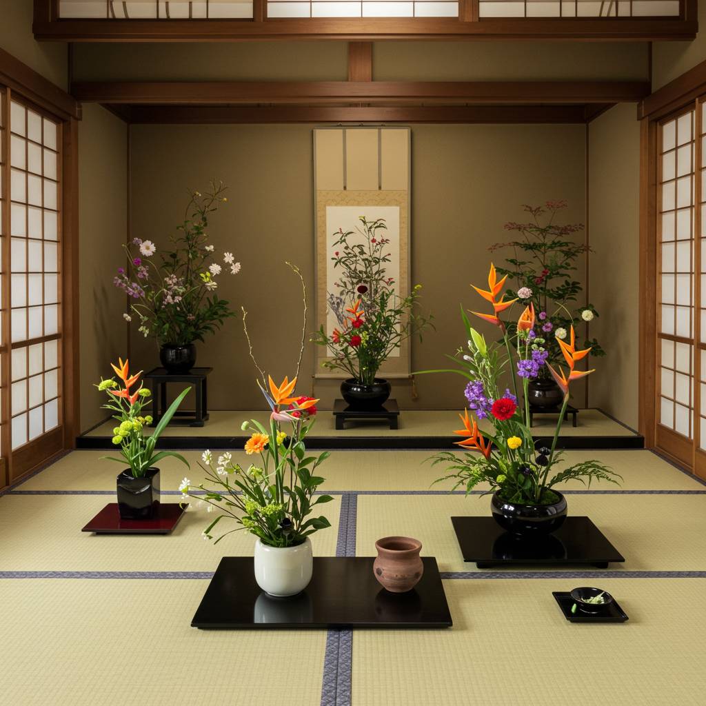 いけばなの源流は、**仏前に花を供える営み(供花)**にさかのぼるとされます。やがて住空間のしつらえや茶の文化と結びつき、床の間や器の選択、季節の取り込みなどを通して、空間を設計する芸術として成熟していきました。
