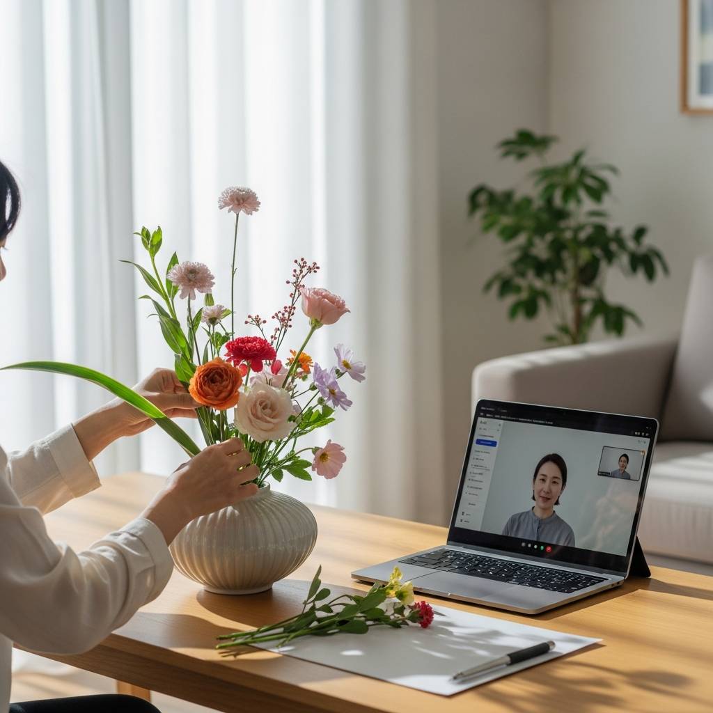 自宅という最もリラックスできるプライベートな空間で稽古を行うことは、周囲の目を気にせず、自身の感性と深く向き合えるという意外なメリットも生み出しています。Sさんが見せてくれた、季節の花材を伸びやかに生けた作品は、伝統文化が新しい時代のツールと融合し、さらに進化していることを証明していました。忙しい日々の暮らしの中で、画面を通じて季節の移ろいを感じ、心を整える。そんな新しいいけばなのスタイルは、確実に私たちの生活に彩りを与えてくれています。