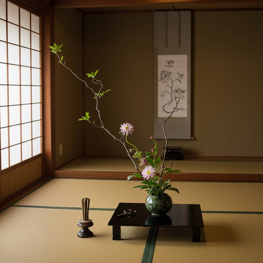 いけばなは単なる花のアレンジメントではありません。それは日本の深い精神性と美意識が結晶化した芸術形態です。欧米のフラワーアレンジメントが装飾的な美しさを追求するのに対し、いけばなは自然との対話、季節感の表現、そして空間における余白(間)の美学を重視します。