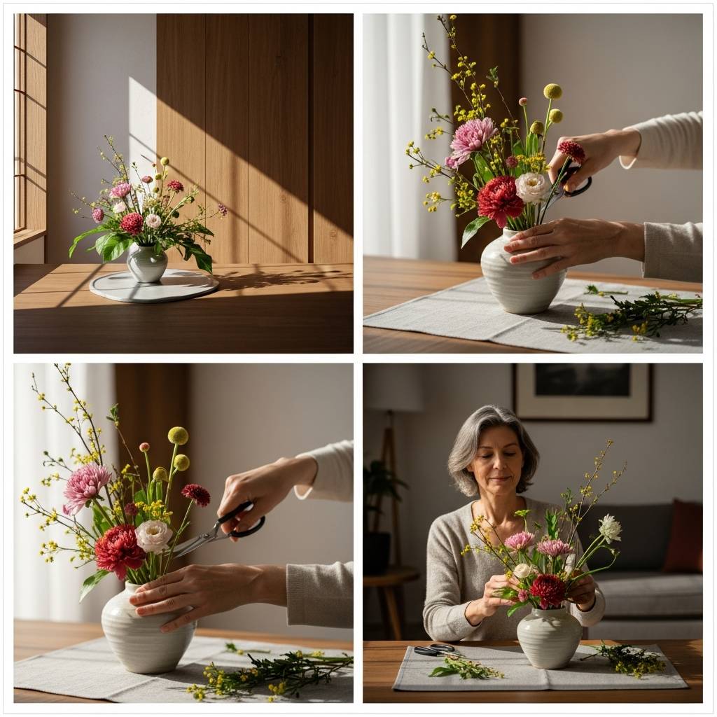 自宅に持ち帰り、茎を水切りして花器に生ける静かな時間は、まさにマインドフルネスそのものです。剣山を使って伝統的な型を意識するのも良いですが、初心者のうちは気に入ったピッチャーやガラスの花瓶に「投げ入れ」スタイルで飾るだけでも十分な魅力を放ちます。生け花には空間を整える力があり、リビングや玄関に一輪の花があるだけで、殺風景だった部屋に生命力が宿り、空気が澄み渡るような感覚を覚えるでしょう。
